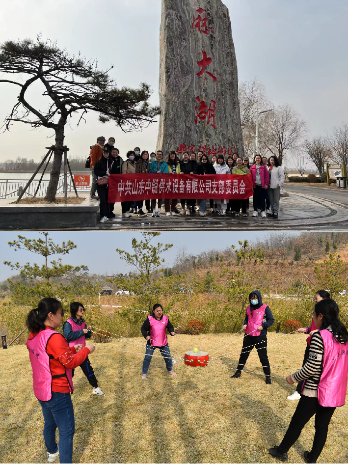 3月8日,集團公司組織機關(guān)及各分子公司80余名女職工到山東三水源生態(tài)旅游度假區(qū)開展團建活動。在溫暖的春風和陽光下與大自然親密接觸的同時,活動設(shè)置了動力圈、挑戰(zhàn)150S等突出趣味性、協(xié)作性的小游戲,吸引大家踴躍參與,樂在其中。