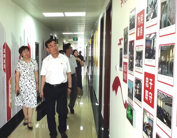 與會(huì)人員查看水務(wù)集團(tuán)黨史學(xué)習(xí)教育活動(dòng)資料,參觀集團(tuán)黨建文化長(zhǎng)廊